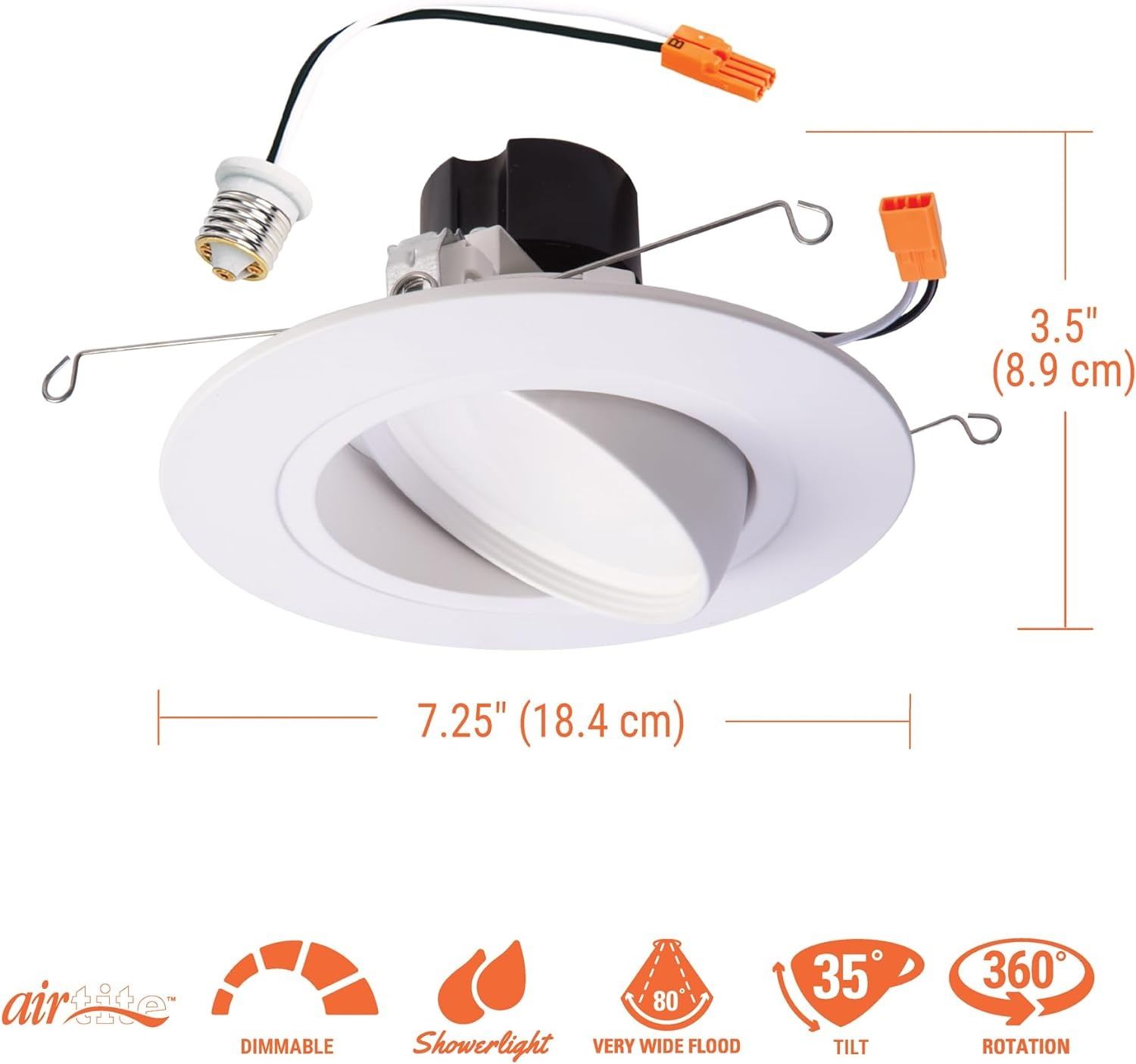 LED BULB & TRIM REPLACEMENT. 35 DEGREE TILT, 360 DEGREE ROTATION. SUITABLE FOR CEILINGS UP TO 9 FEET HIGH. 5 SELECTABLELIGHT COLOUR 3000K, 653 LUMENS, 7.2 WATTS. MSRP $50 AMZ SES