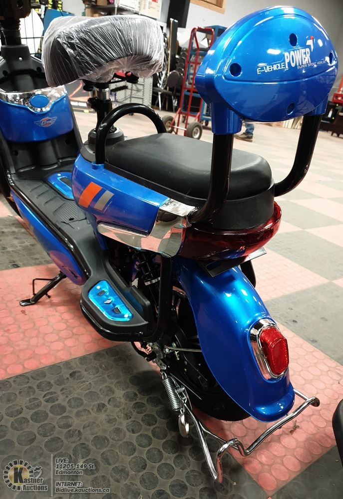 3 HOUR RUN TIME, INCLUDES CHARGE PLUG IN AND GO. ELECTRIC MOTOR WITH MAXIMUM POWER OF 500WATTS SPEED 32KM/H - 45KM/H 200LB WEIGHT LIMIT 1 YEAR WARRANTY ON MOTOR AND ELECTRIC PARTS (DOESNOT INCLUDE WEAR AND TEAR OR ABUSE) OPERATING REQUIREMENTS -NO DRIVER'S LICENSE REQUIRED -MINIMUM DRIVNG AGE IS 12 -NO INSURANCE OR REGISTRATION REQUIRED- HELMET REQUIRED - AUTOMOTIVE