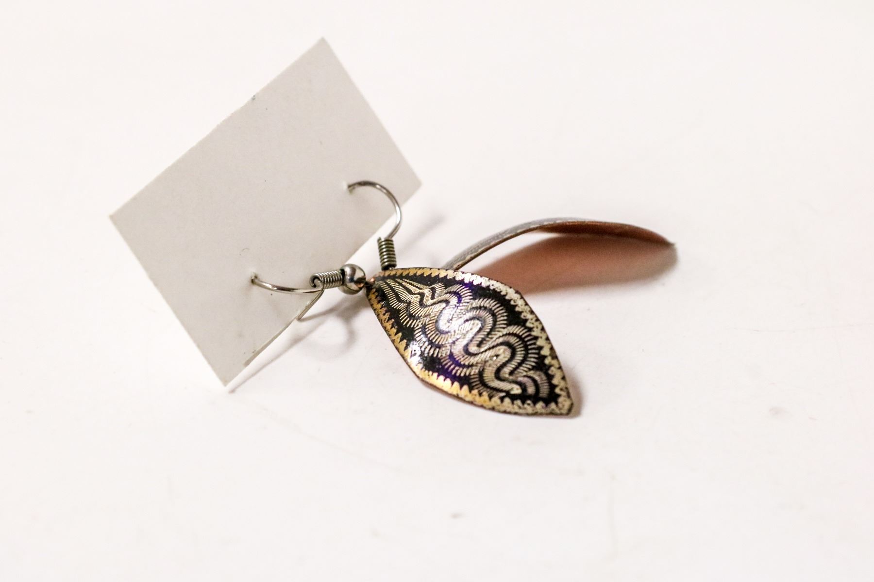 BRASS AND BLACK ENGRAVED DROP EARRINGS