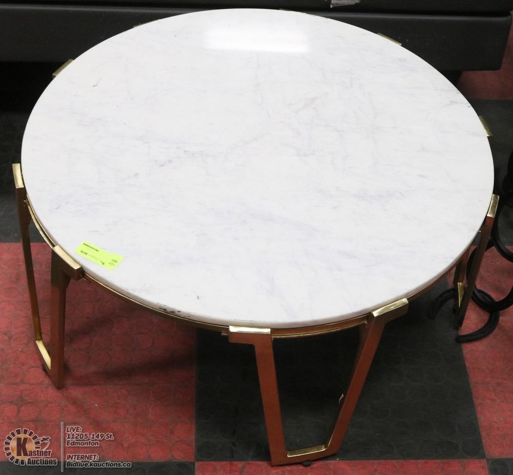 BRASS AND STONE TOP COFFEE TABLE