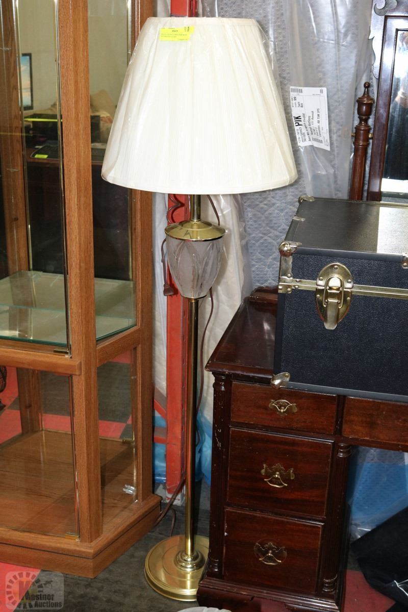 BRASS COLOR FLOOR LAMP WITH DECORATIVE GLASS