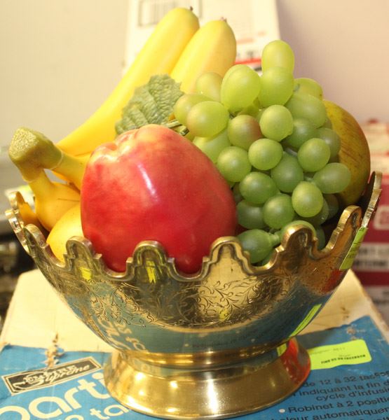 BRASS CROWNED SHAPED BOWL WITH ARTIFICIAL FRUIT