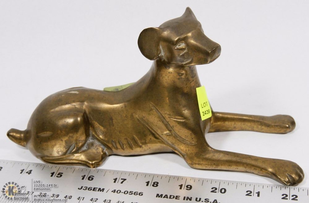 BRASS DOG FIGURINE - 9.5 INCHES LONG