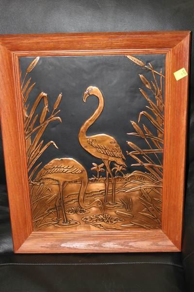 BRASS FLAMINGO PICTURE 15 1/2" X 11 1/2"