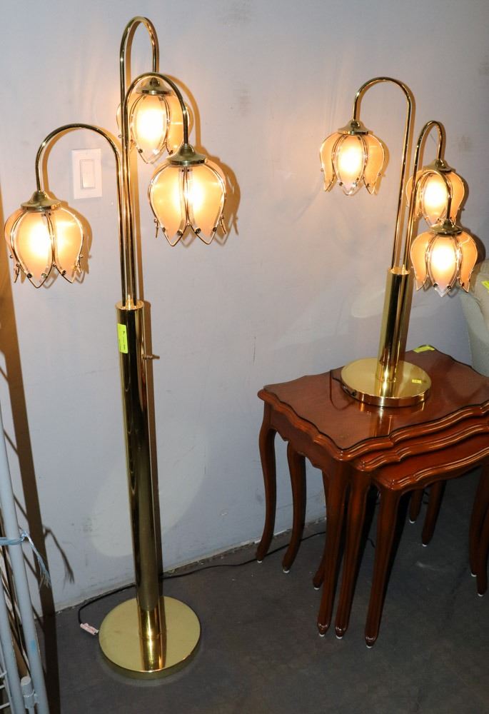BRASS FLOOR LAMP WITH MATCHING TABLE LAMP