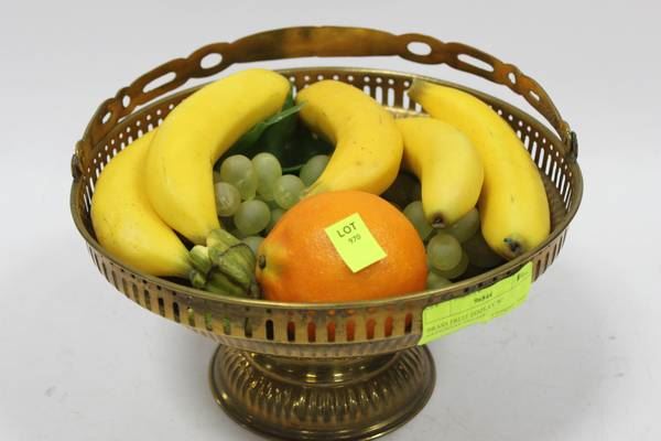 BRASS FRUIT DISPLAY W/ ARTIFICIAL FRUITS