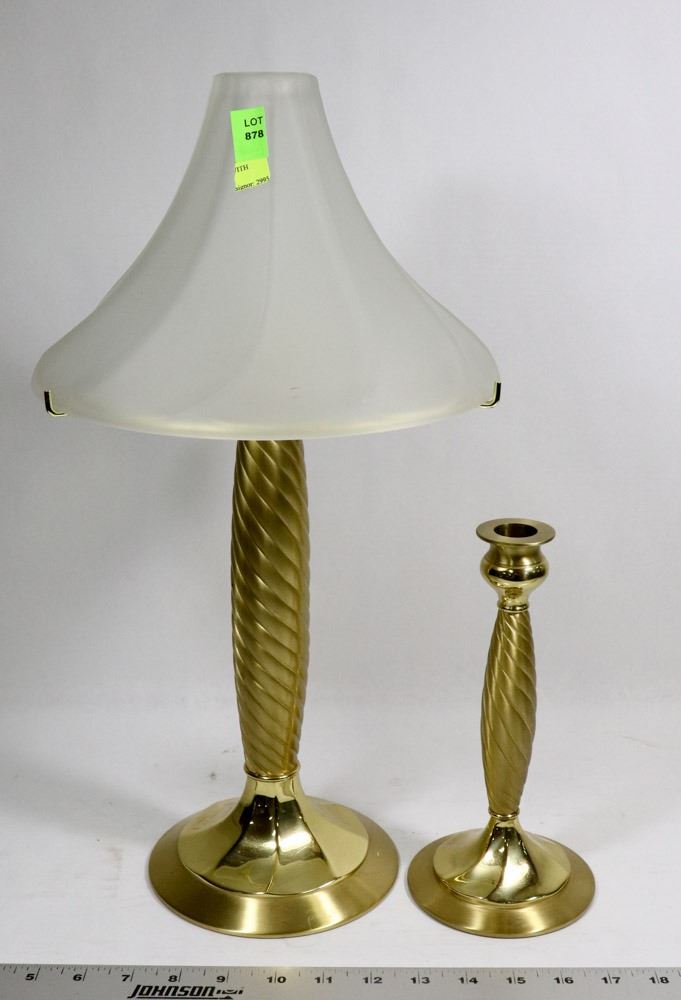 BRASS LAMP WITH MATCHING CANDLE HOLDER