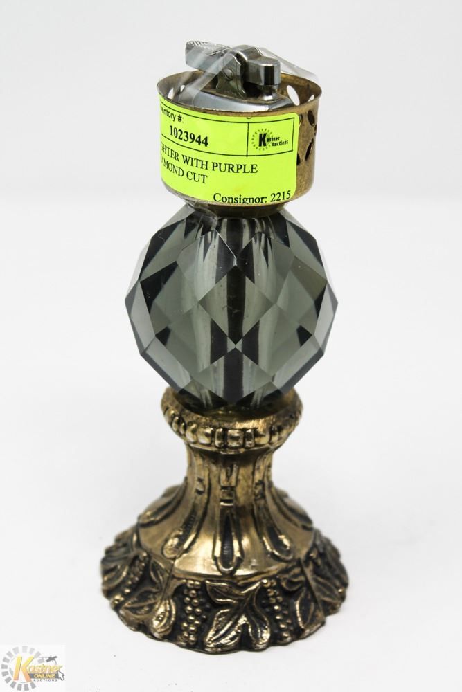 BRASS LIGHTER WITH PURPLE GLASS DIAMOND CUT