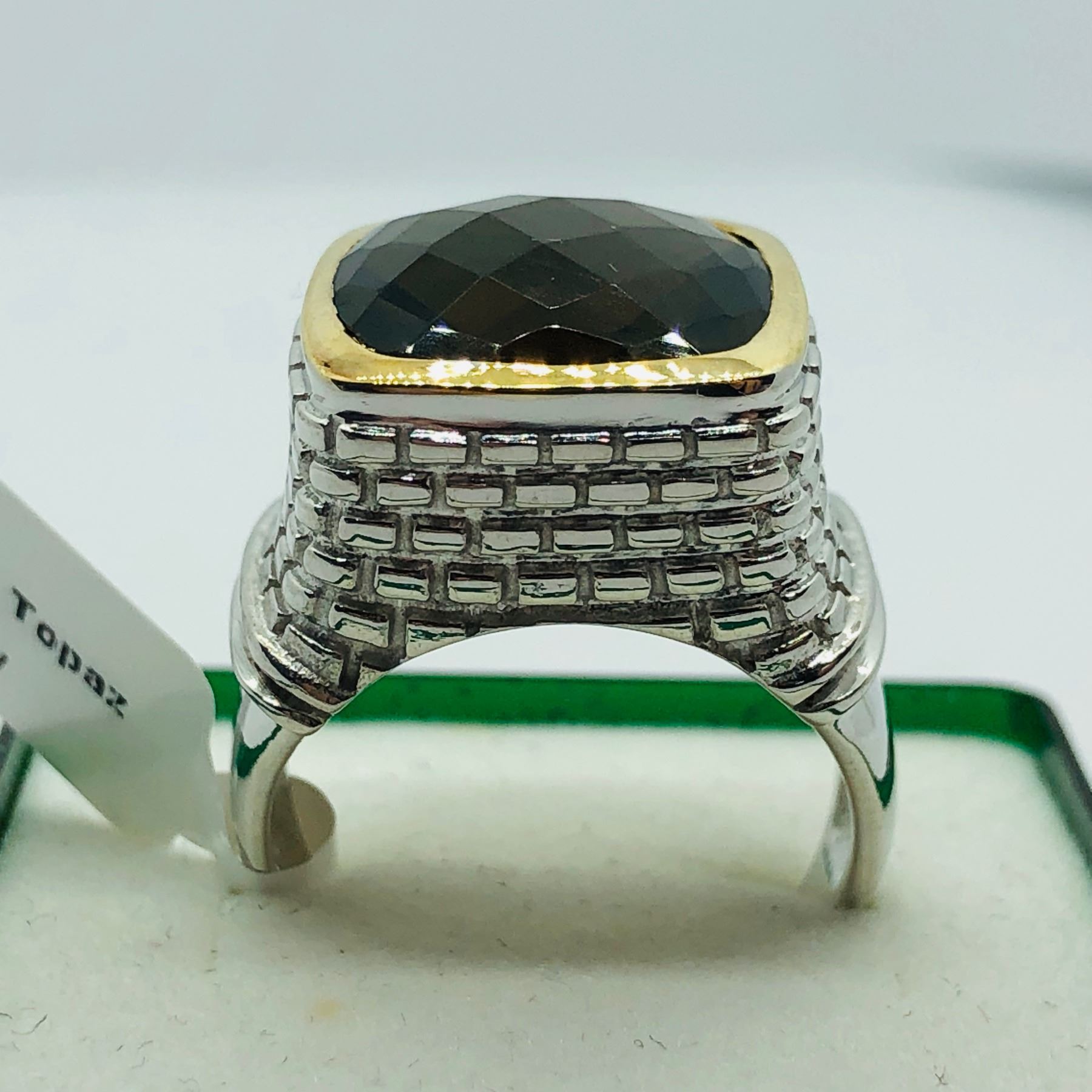 110 - CR142: CODE 2470 - M50: BRASS SMOKEY TOPAZ(7.9CT) MEN'S RING