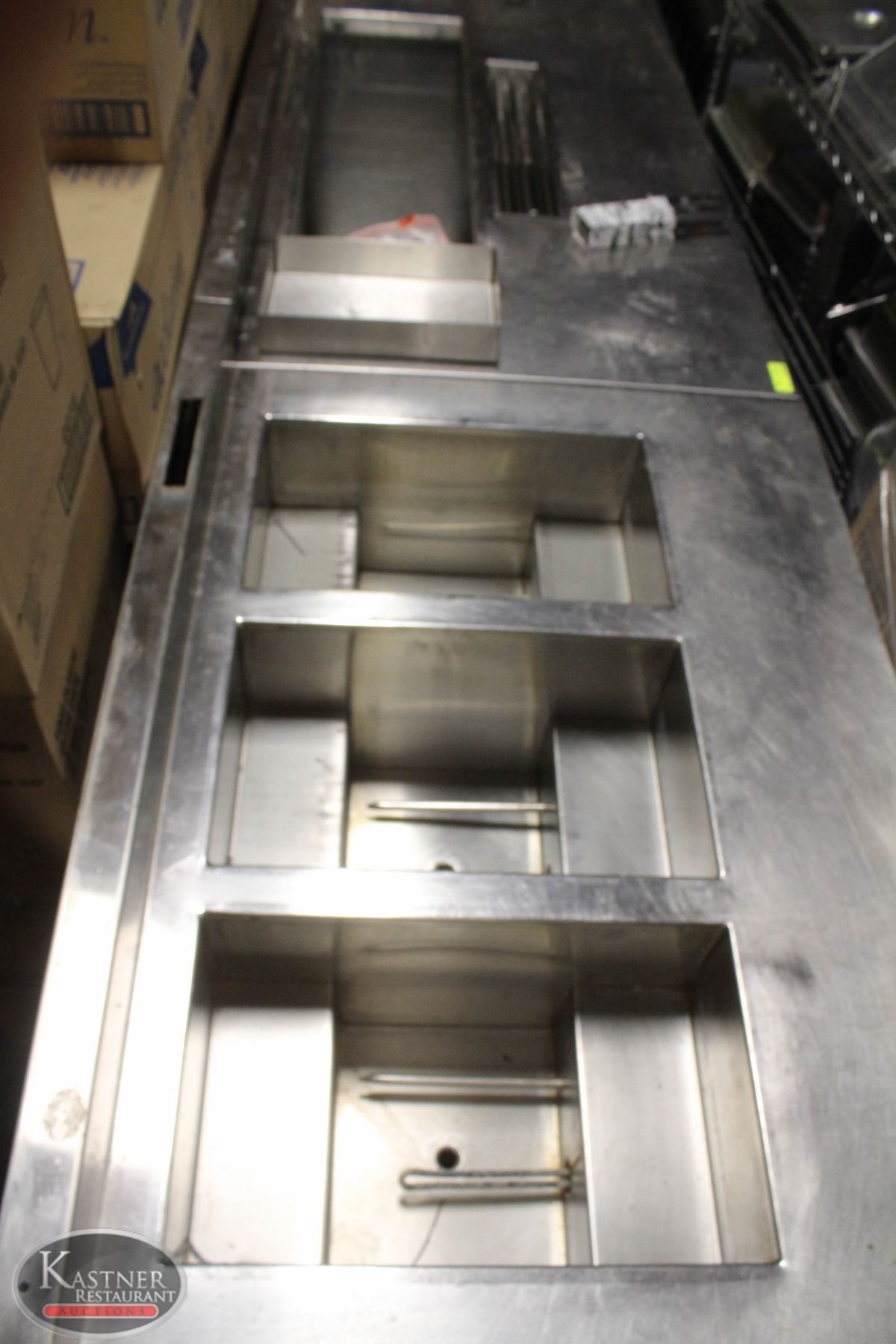 PIECE #1: 3 WELL STEAM TABLE 48"X34"39" PIECE #2: REFRIGERATED COLD WELL WITH COMPRESSOR 60"X34"X39" PIECE #3: CABINET WITH SINK 36"X34"X39"