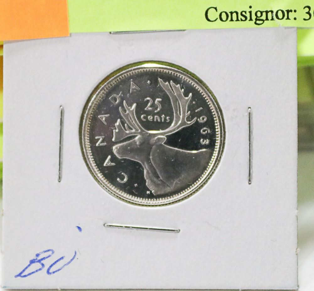 BRILLIANT UNC 1963 CANADIAN SILVER 25 CENT COIN