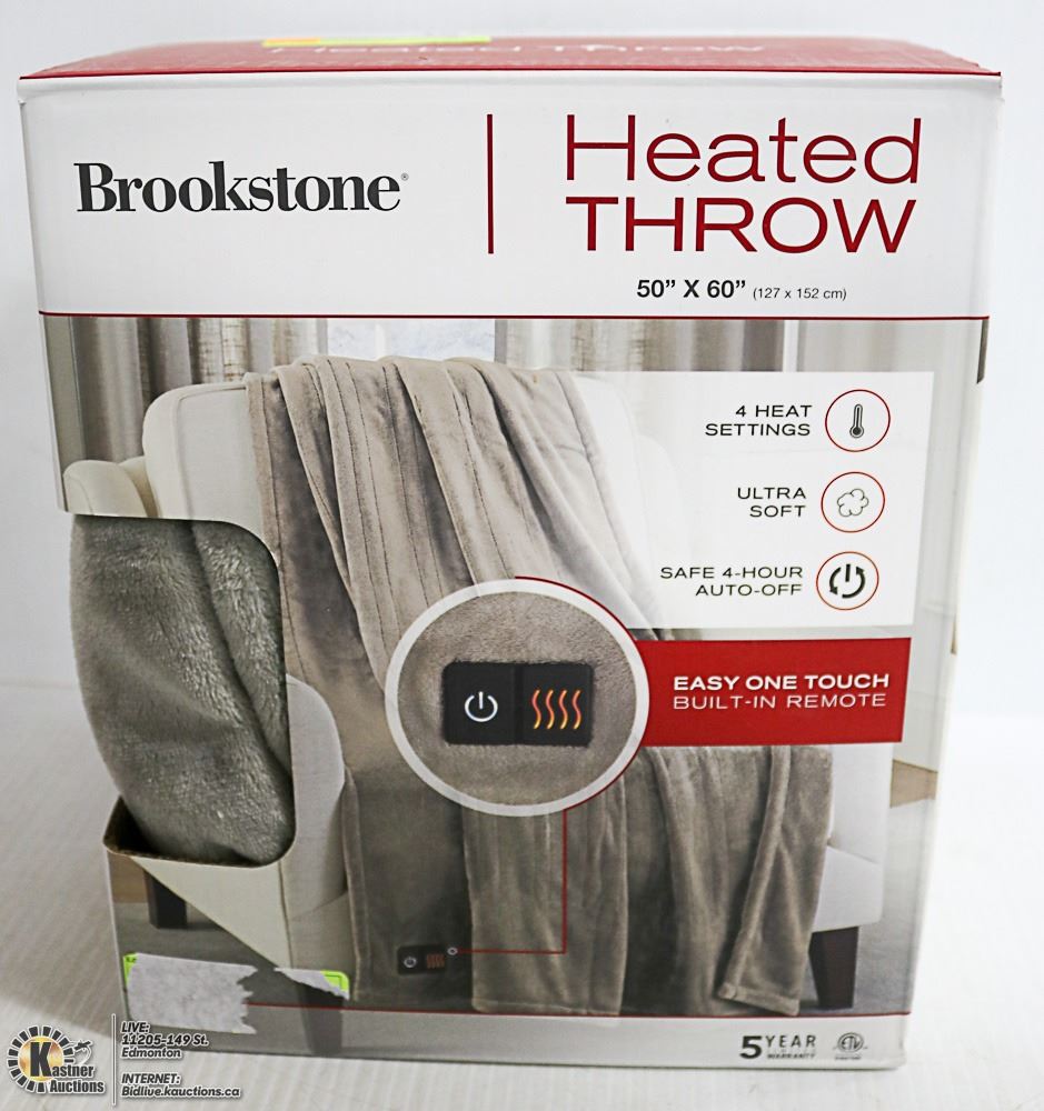 BROOKSTONE HEATED THROW 50" X 60" 4 HEAT SETTING