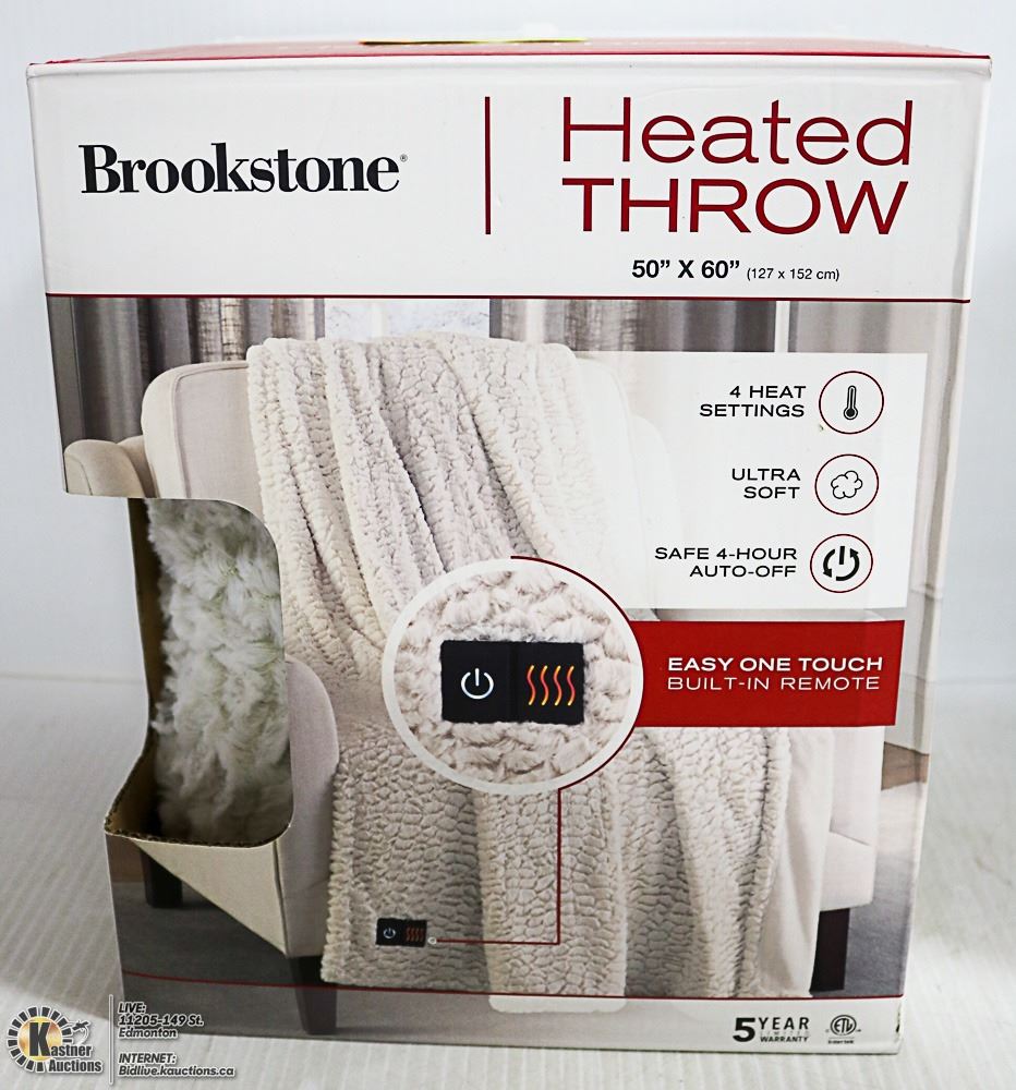 BROOKSTONE HEATED THROW 50" X 60" 4 HEAT SETTING