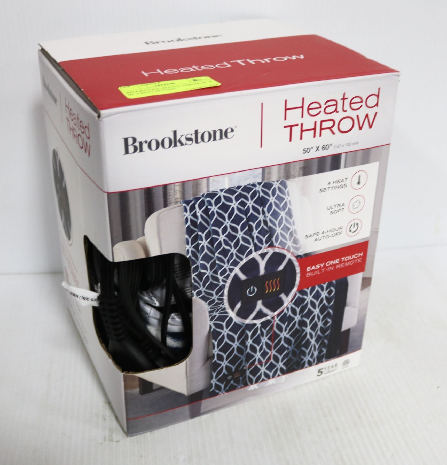 BROOKSTONE HEATED THROW 50" X 60" 4 HEAT SETTING