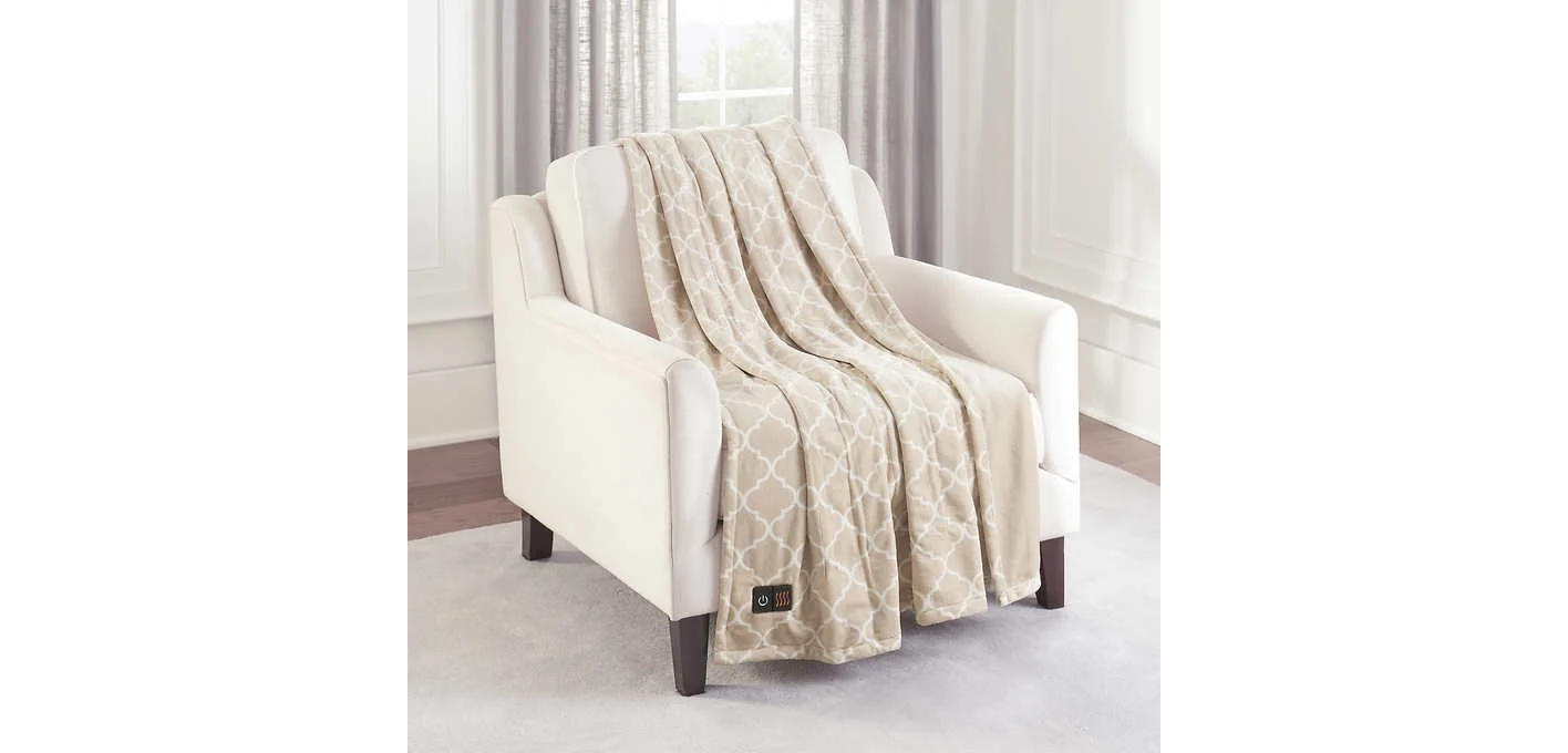 BROOKSTONE HEATED THROW (BEIGE) (NOT HEATING UP, CAN BE USED AS BLANKET)