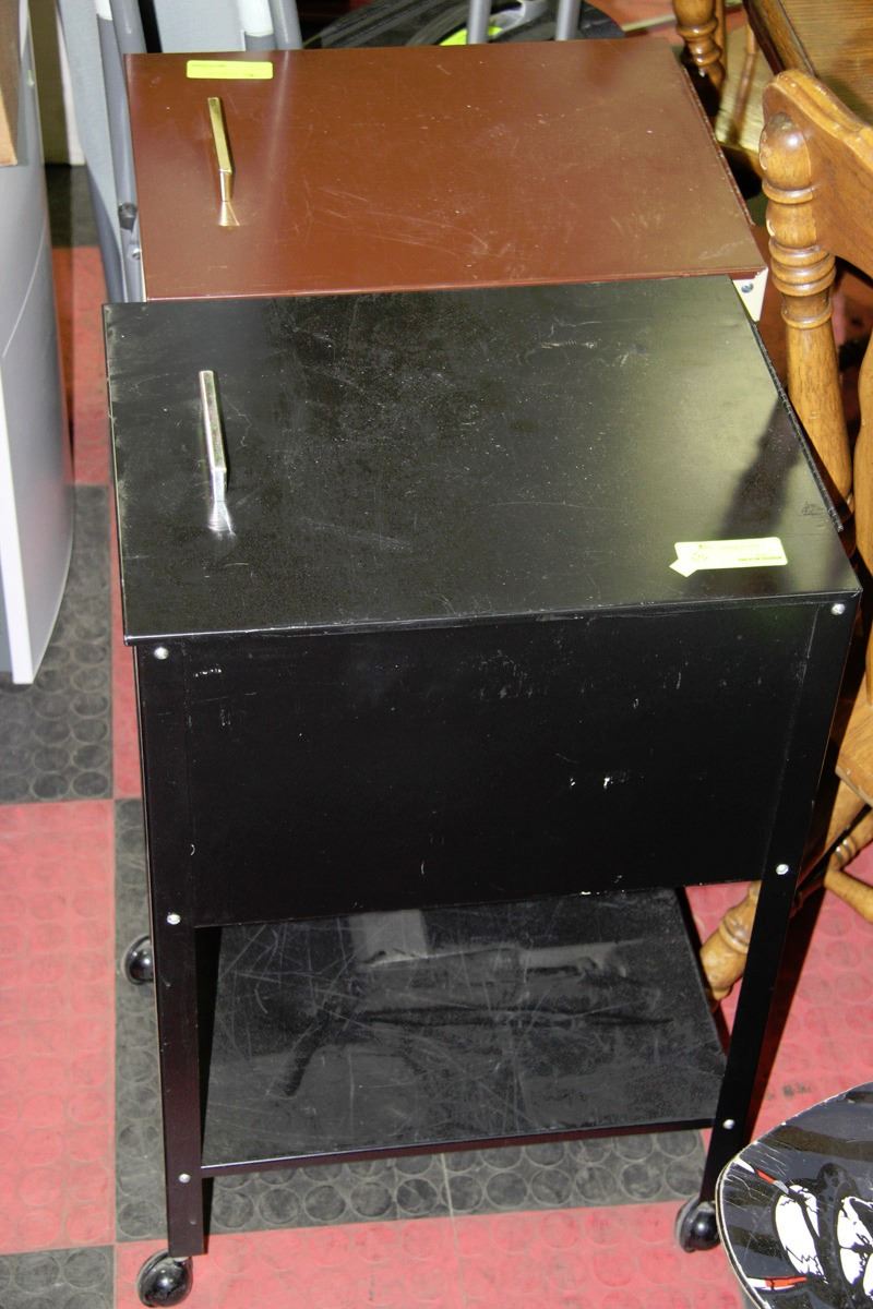 BROWN AND BLACK ROLLING FILING CABINET