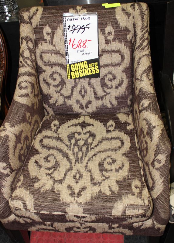 BROWN & CREAM PATTERNED FABRIC ACCENT CHAIR