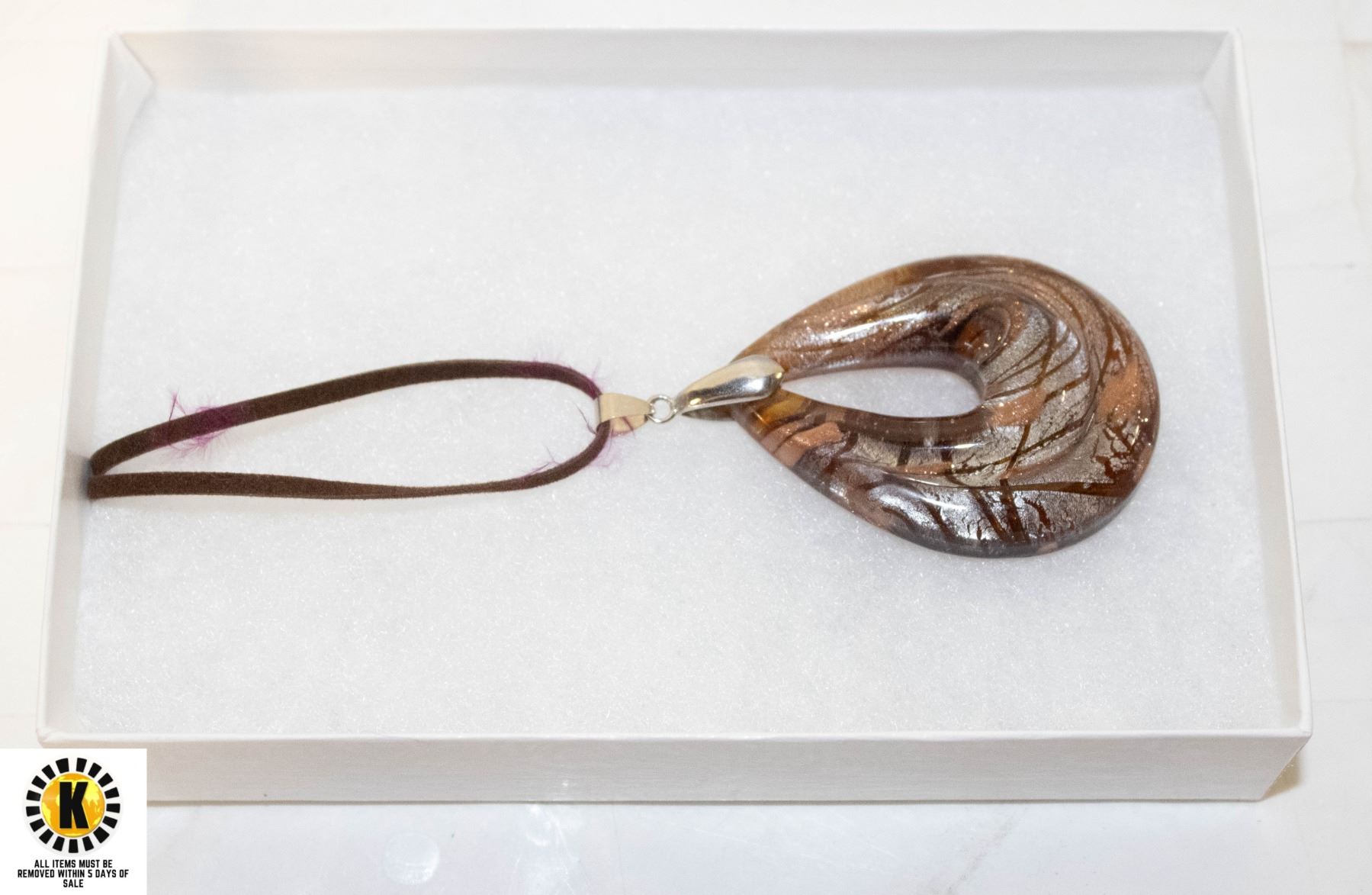 BROWN GOLD FOIL LAMPWORK NECKLACE 19"
