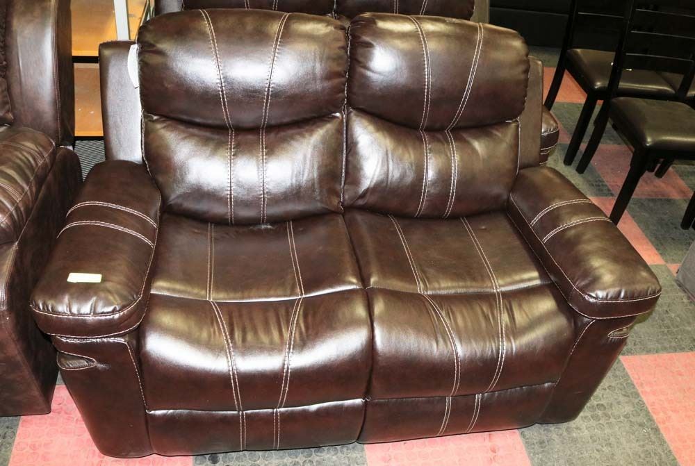BROWN LEATHERETTE RECLINING 57" LOVE SEAT