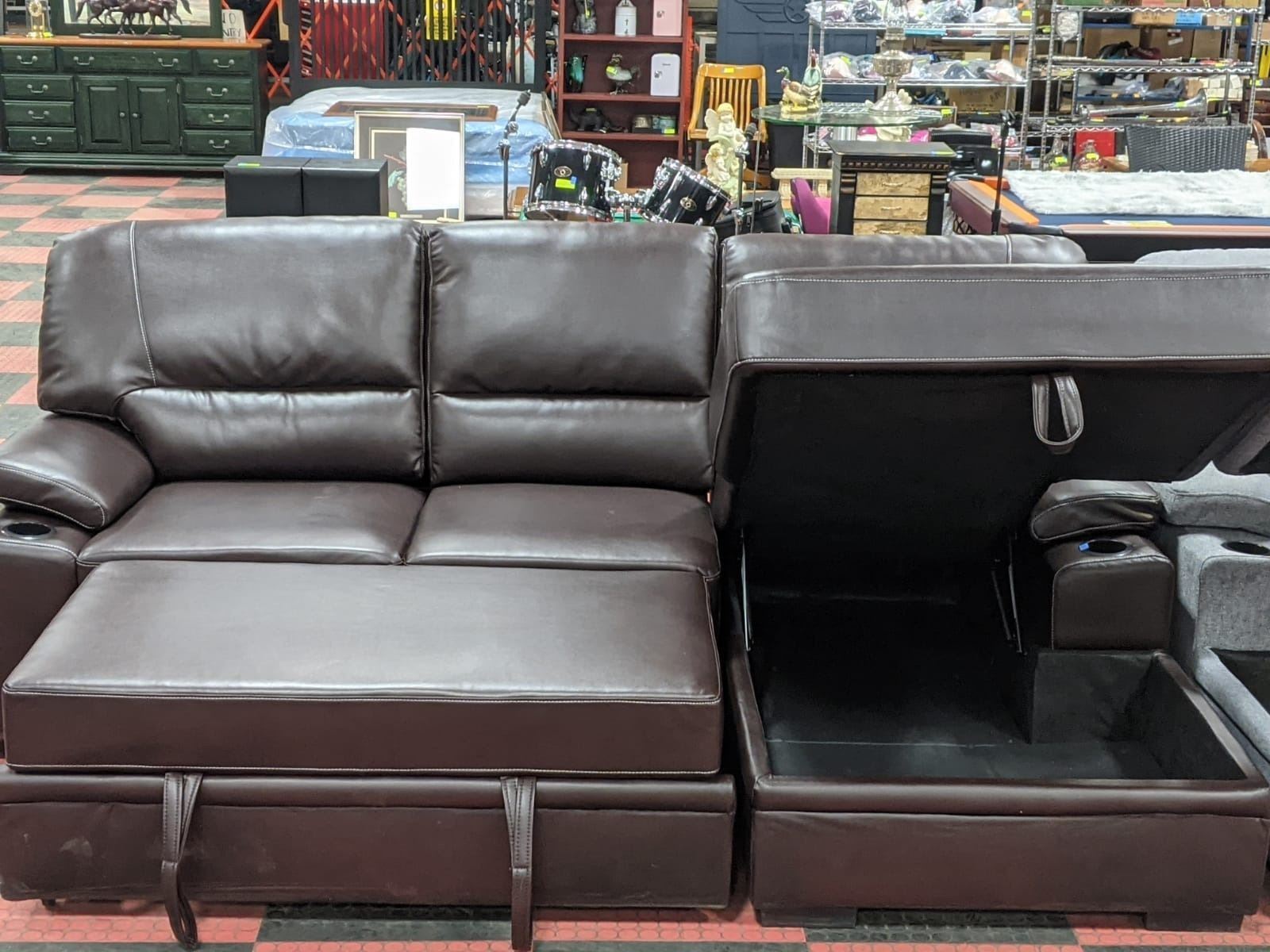 BROWN LEATHERETTE SECTIONAL WITH HIDE-A-BED