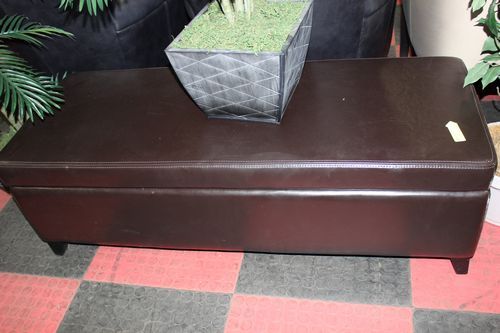 BROWN LEATHERETTE STORAGE OTTOMAN
