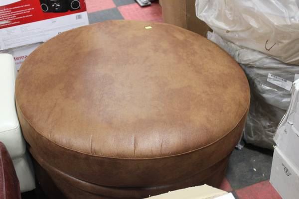 BROWN MICROFIBRE ROUND OTTOMAN NEW IN PKG