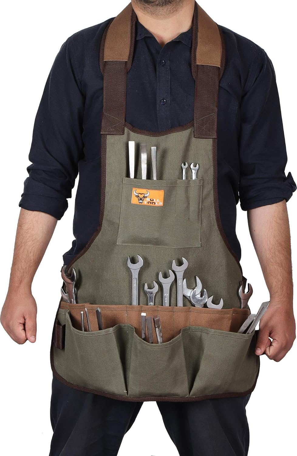 BT 19-1101 HEAVY WEIGHT 15 OZ. DYED DUCK COTTON CANVAS 16 POCKET UTILITY SMART TOOL WAIST APRON - OLIVE DRAB - (TOOLS ARE NOT INCLUDED) | Category: Tools & Hardware