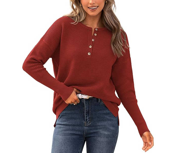 BTFBM CASUAL WOMEN SWEATERS 2024 FALL SWEATER LONG SLEEVE RIBBED KNIT PULLOVER LOOSE SOLID SPLIT JUMPER TOPS, MEDIUM