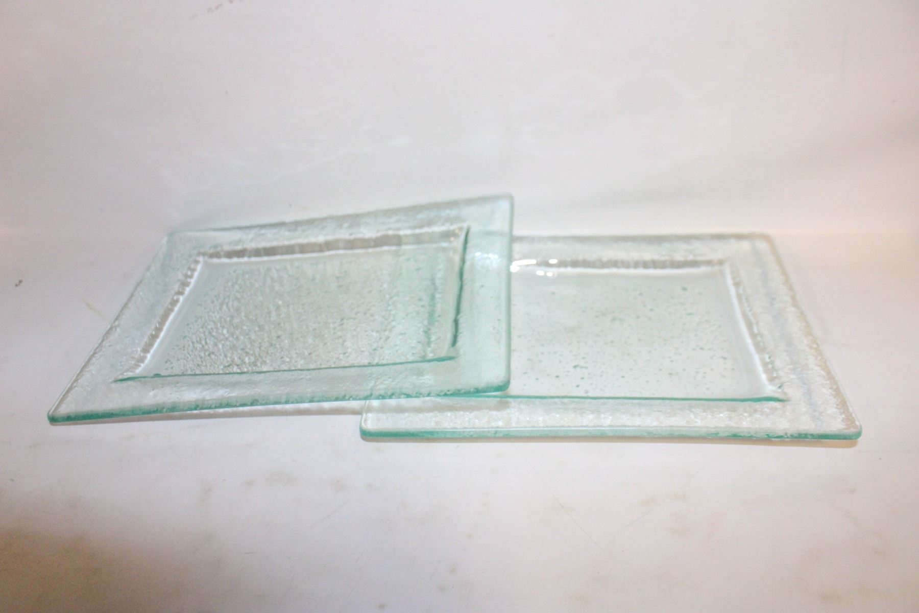 BUBBLE ART GLASS TRAYS- LOT OF 2- 8" X 6"