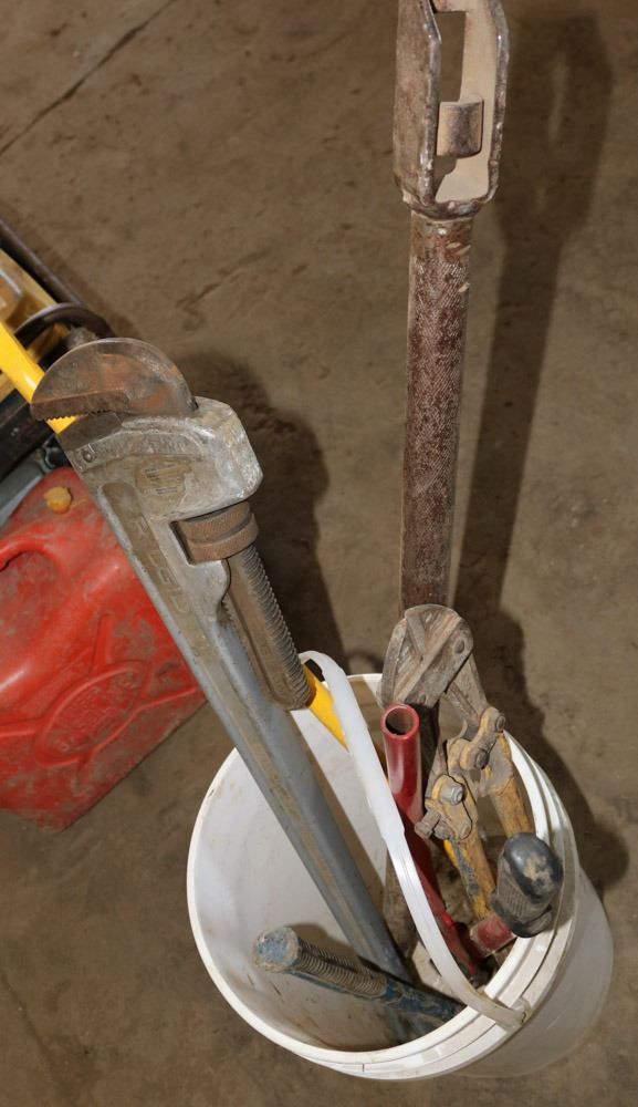 BUCKET OF VARIOUS TOOLS: INCLUDES CUTTERS,