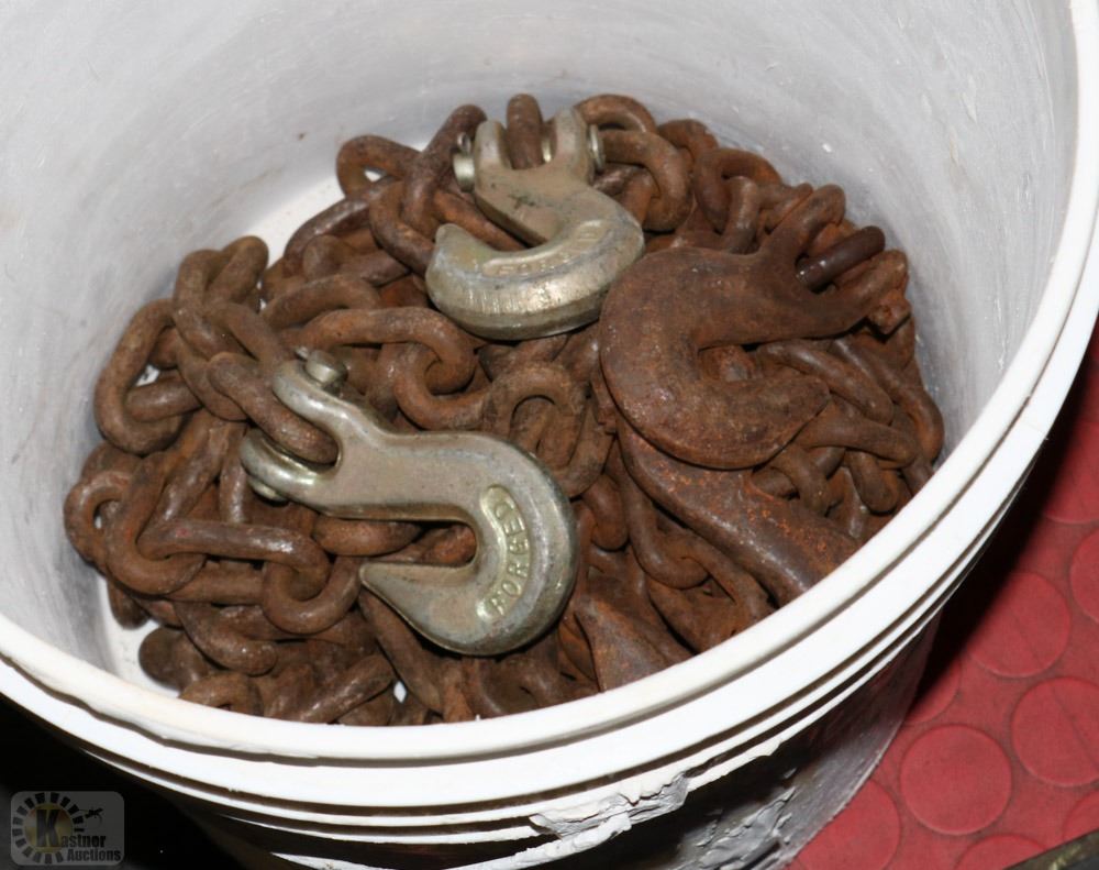 BUCKET WITH 10' AND 12' HEAVY DUTY TOW CHAINS WITH