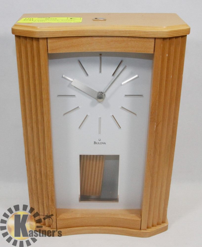 BULOVA TABLE CLOCK, WOODEN CASE, 10" TALL