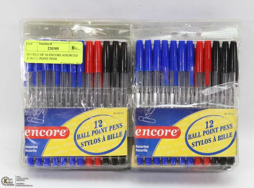 BUNDLE OF 10 ENCORE ASSORTED 12 BALL POINT PENS