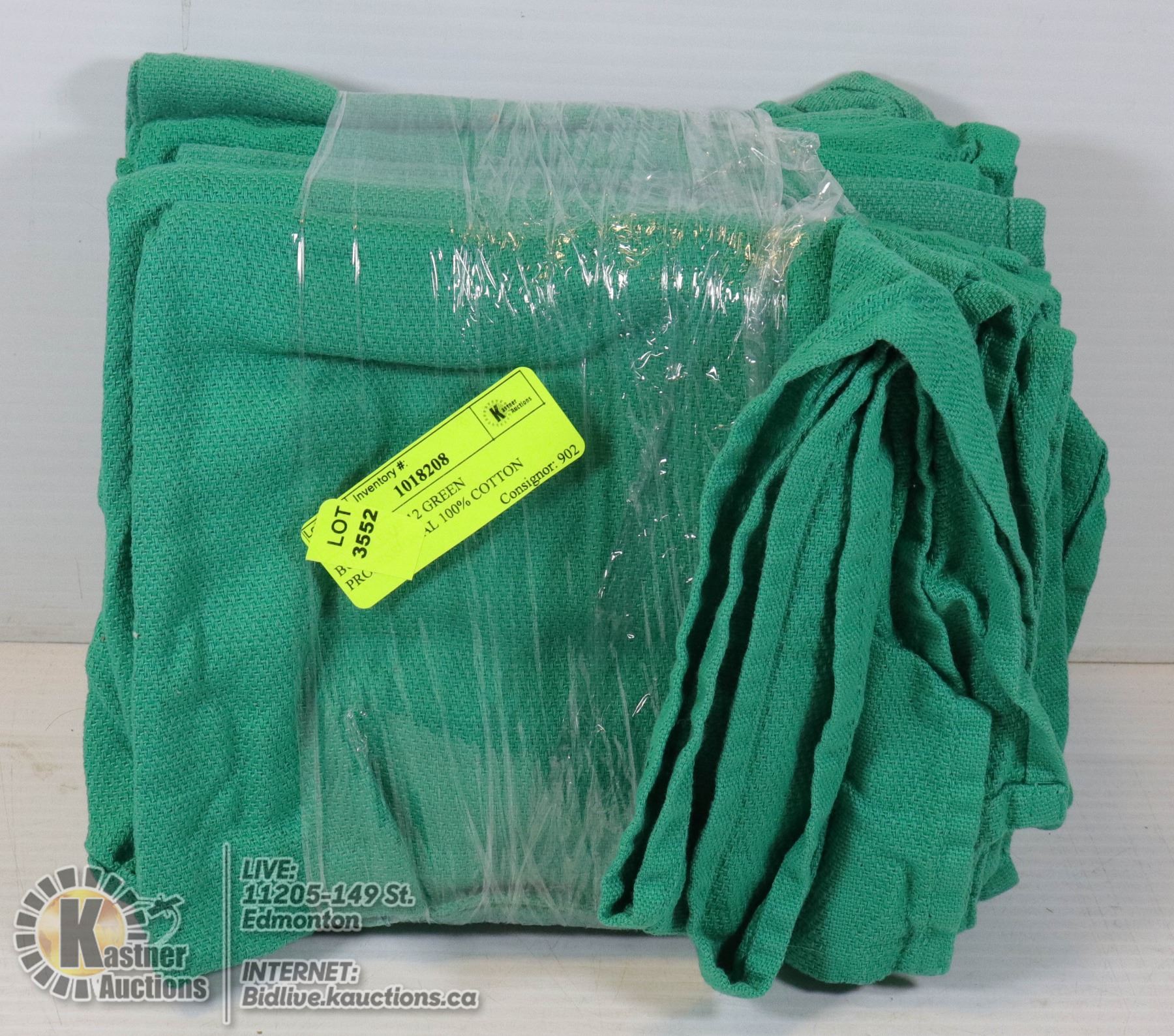 BUNDLE OF 12 GREEN PROFESSIONAL 100% COTTON WIPING/CLEANING TOWELS - PACK OF 10 - (17.5"X 28")
