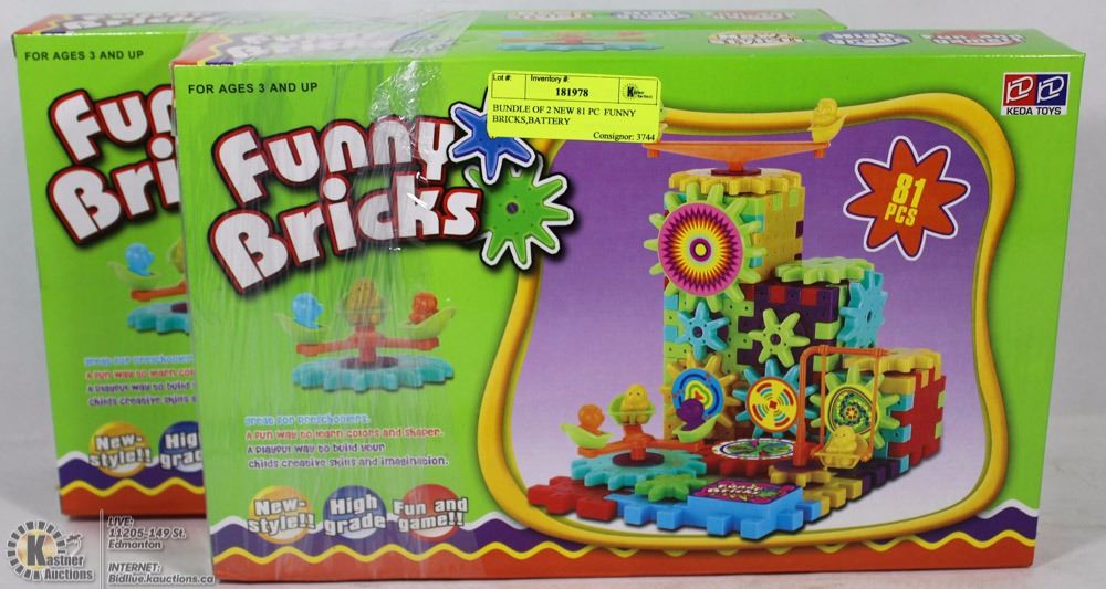 BUNDLE OF 2 NEW 81 PC  FUNNY BRICKS,BATTERY