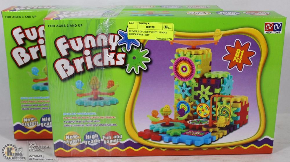 BUNDLE OF 2 NEW 81 PC  FUNNY BRICKS,BATTERY