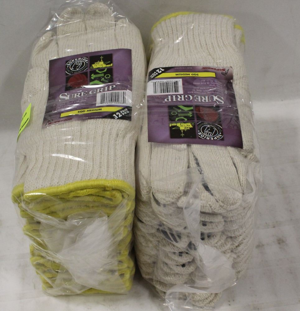 BUNDLE OF 24 PAIR SURE GRIP COTTON WORK GLOVES