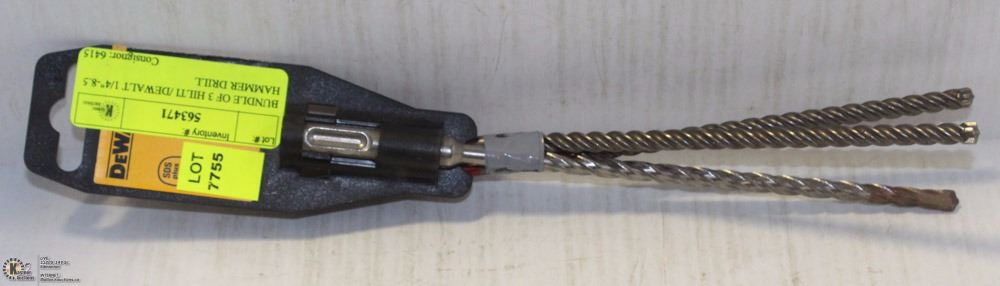 BUNDLE OF 3 HILTI /DEWALT 1/4"-8.5 HAMMER DRILL