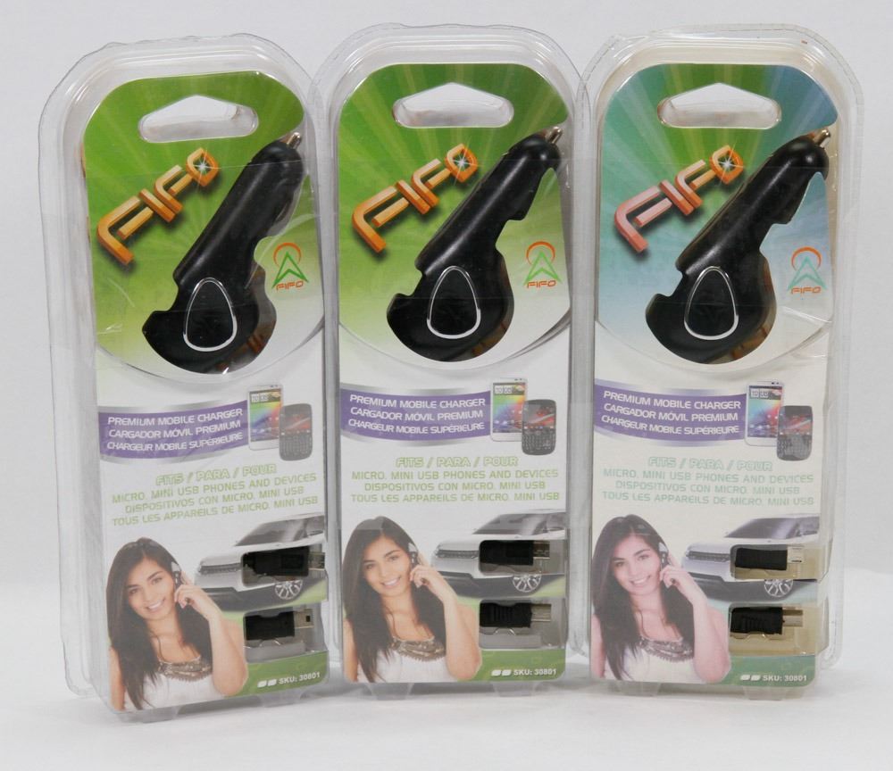 BUNDLE OF 3 MICRO USB AND MINI USB CAR CHARGERS