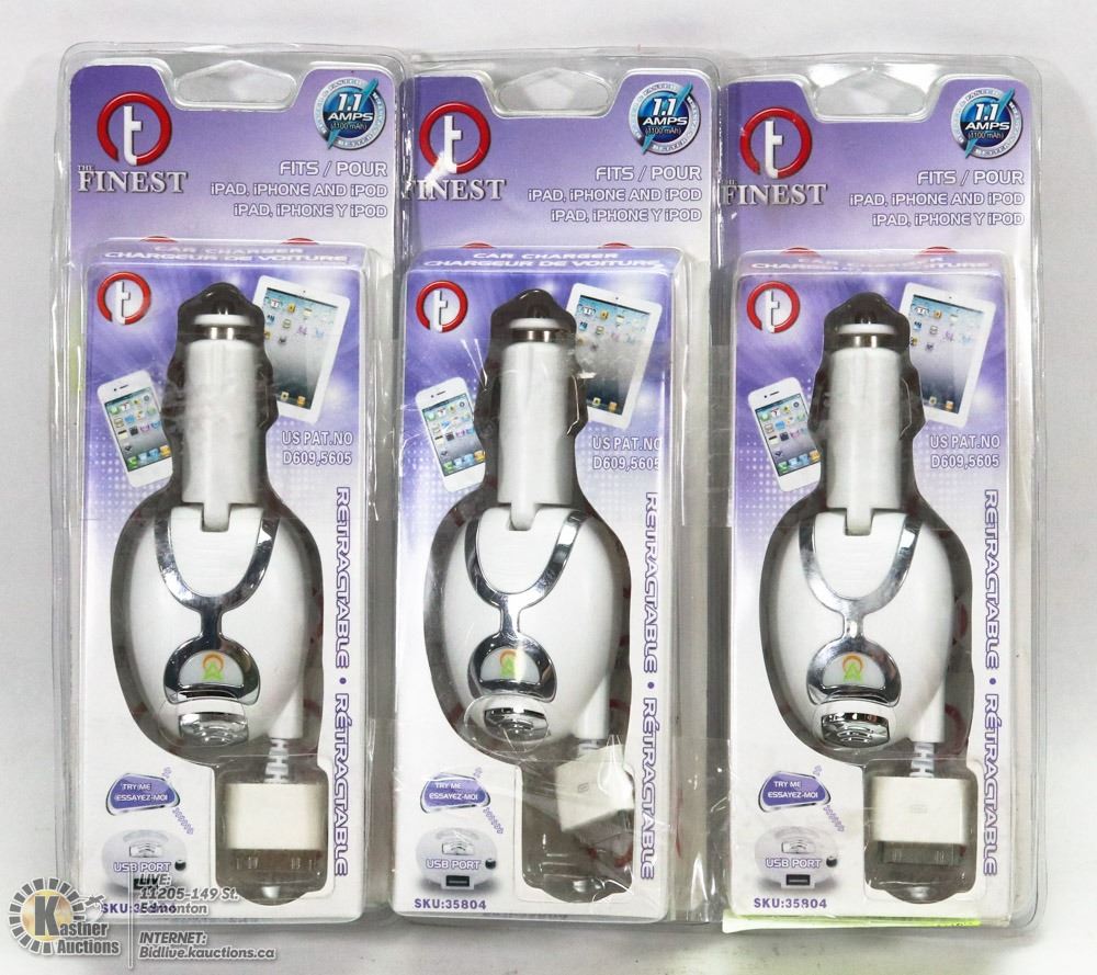 BUNDLE OF 3 PHONE CAR CHARGERS FOR APPLE PRODUCTS
