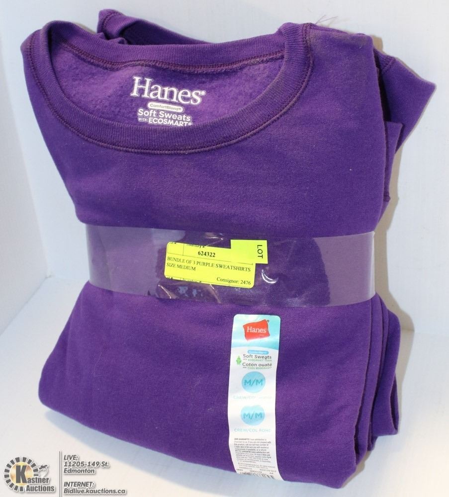 BUNDLE OF 3 PURPLE SWEATSHIRTS SIZE MEDIUM