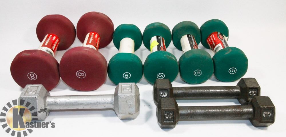 BUNDLE OF ASSORTED SIZE DUMBBELLS