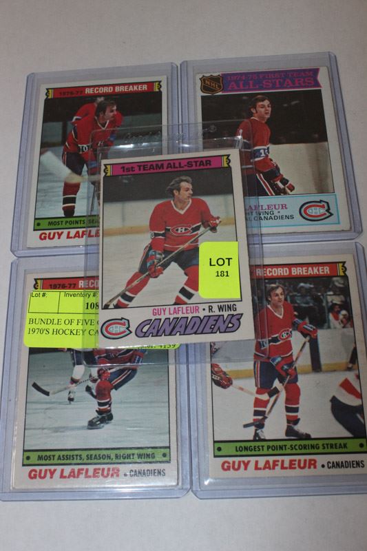 BUNDLE OF FIVE GUY LAFLEUR 1970'S HOCKEY CARDS