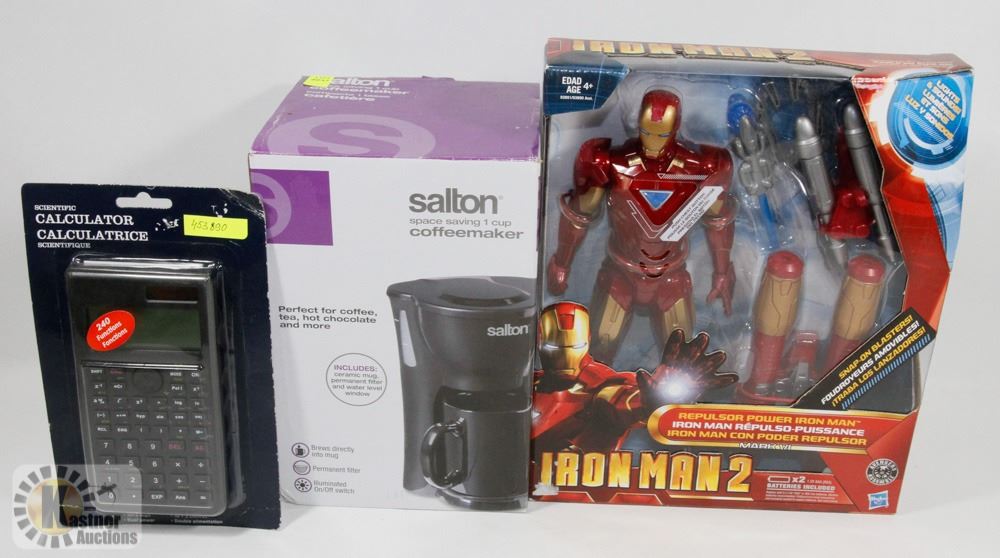 SALTON COFFEE MAKER, AND IRON MAN ACTION FIGURE