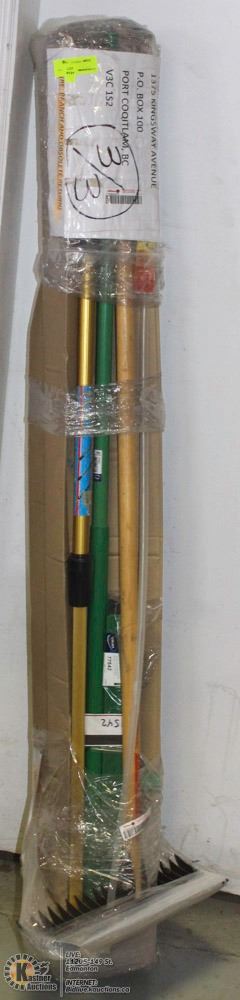 BUNDLE OF MISC. RAKES + HANDLES + MORE