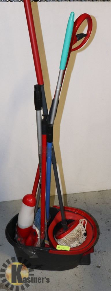 ACCESSORIES - VILEDA FOOT PEDAL SPIN BUCKET WITH MOP, SWIFFER, SQUEEGEE WITH ALUMINUM TELESCOPING HANDLE, POLE SCRUBBER FOR TUB/SHOWER, ETC. - GENERAL, HOUSEHOLD