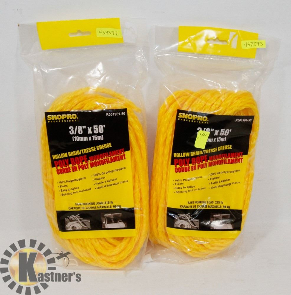 BUNDLE OF TWO 3/8" X 50' HOLLOW BRAID POLY ROPE