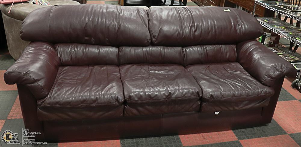 BURGANDY LEATHER SOFA, 90" X 39"