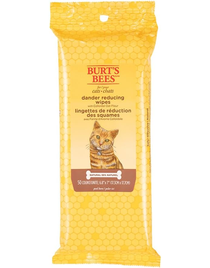 BURT'S BEES FOR CATS DANDER REDUCING GROOMING WIPES WITH COLLOIDAL OAT FLOUR AND ALOE VERA, 50 WIPES