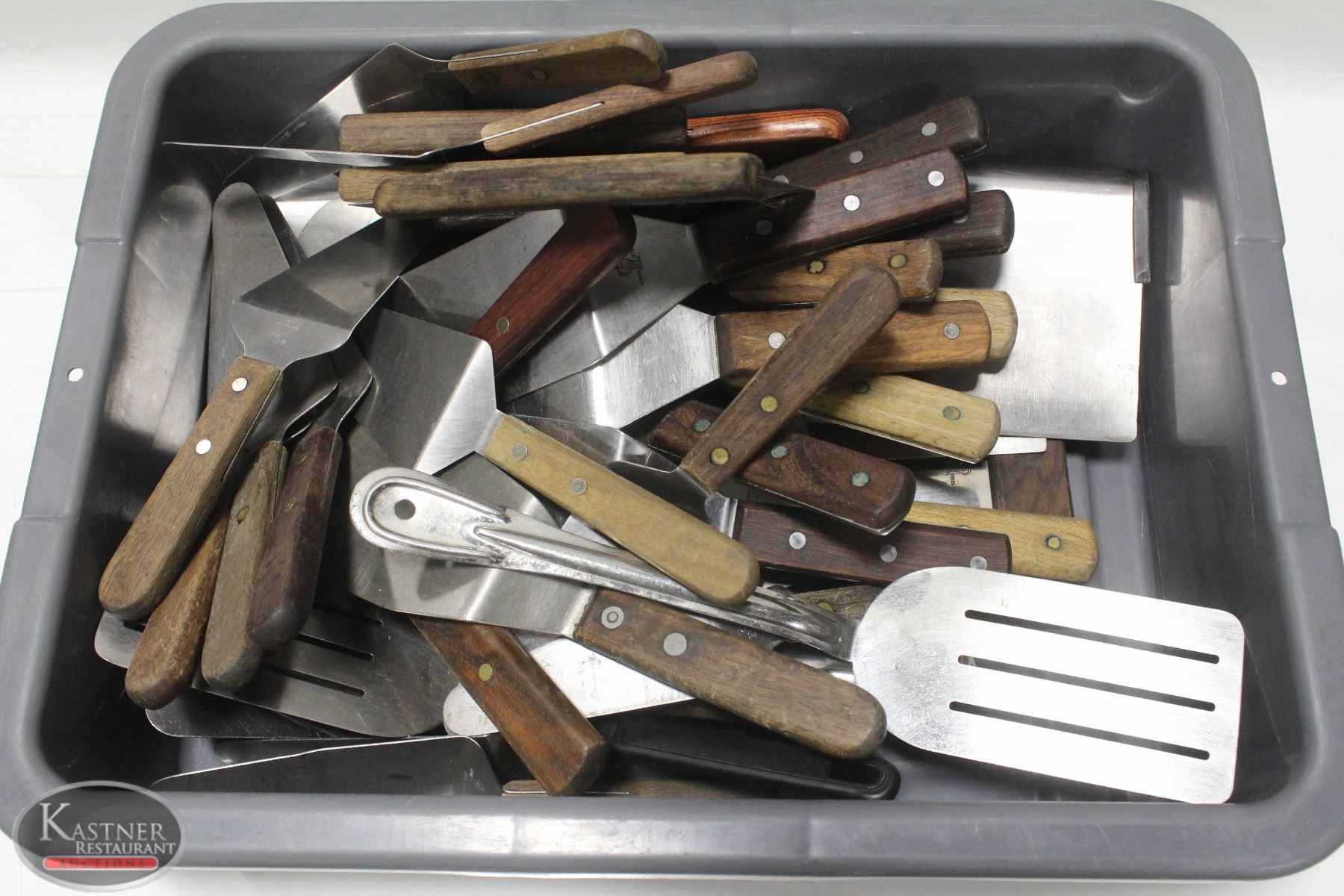 BUS BIN OF ASSORTED SPATULAS, PIE SERVERS, &